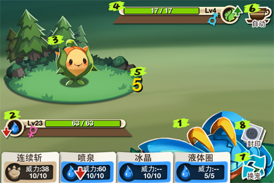 在游戏中,战斗是以双方各自派出自己的宠物进行1V1或者2V2的回合制战斗的形式进行。直到一方宠物全部处于战斗不能状态结束。