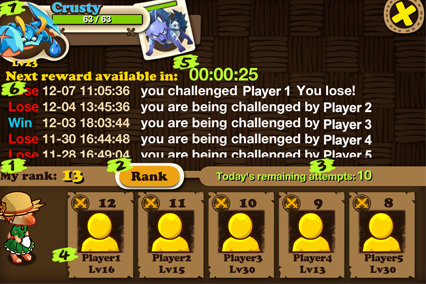 | 4. 可挑战玩家: | 玩家排名之前的其他玩家,点击后将与其进行战斗。 |