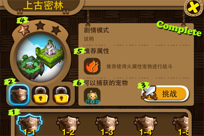 | 1. 选择关卡: | 选择想要挑战的关卡。 |